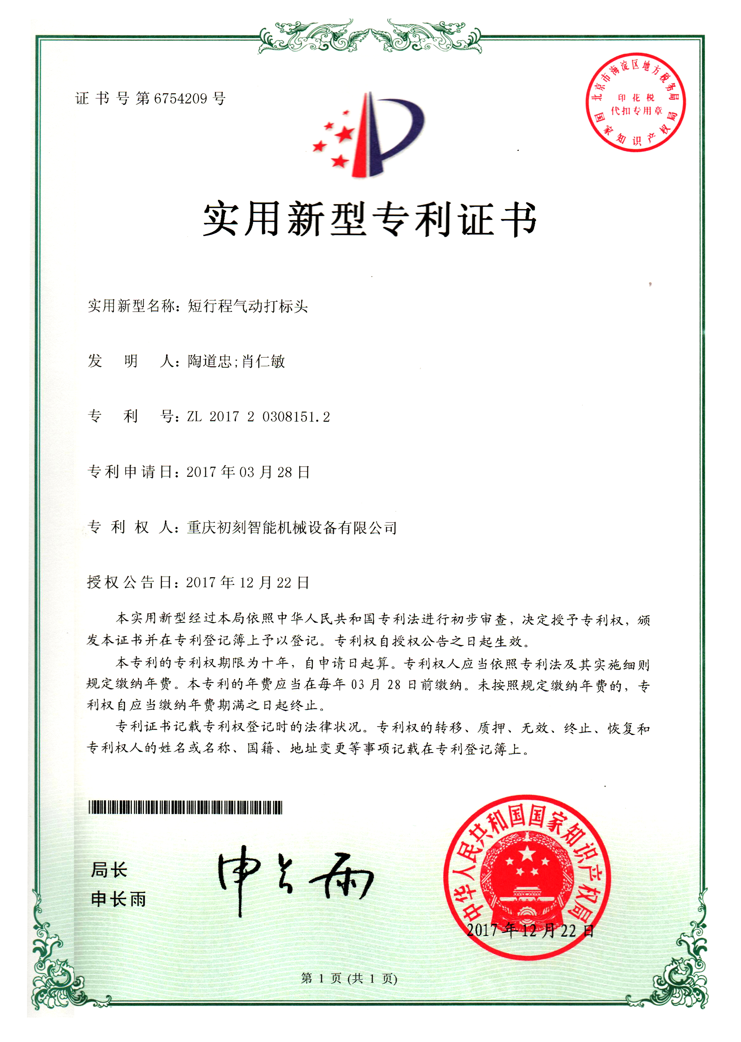 重慶初刻智能機械設備有限公司有多項實用新型專利和發(fā)明專利,和軟件系統(tǒng)專利,技術實力強。