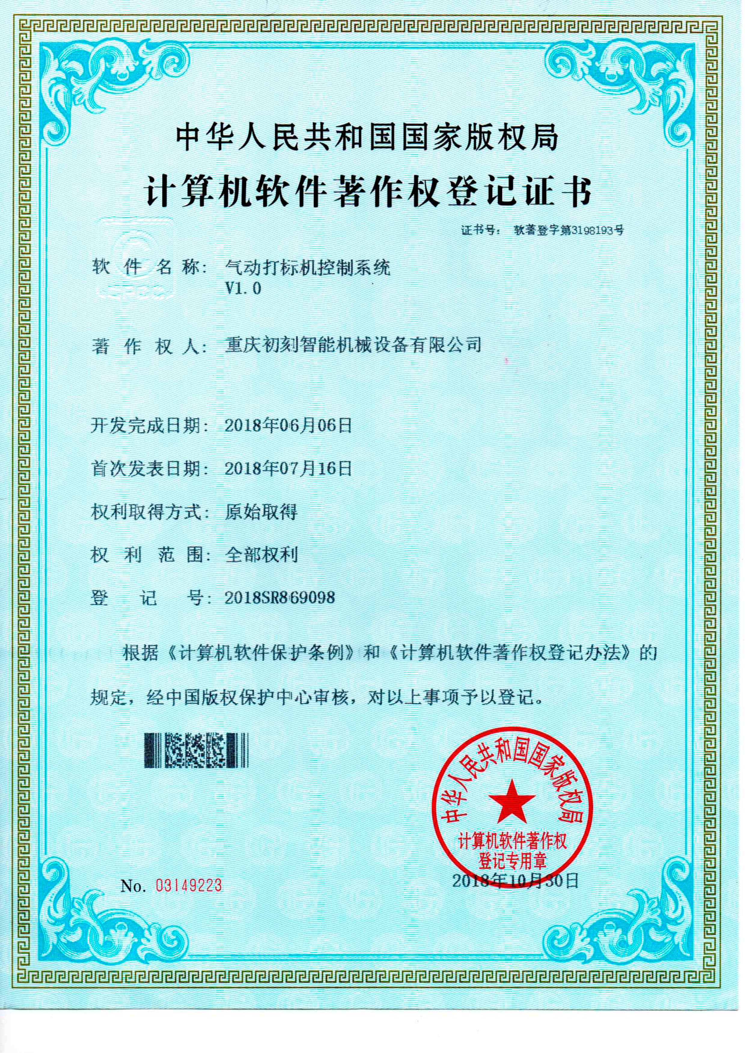 氣動(dòng)打標(biāo)機(jī)軟件專利