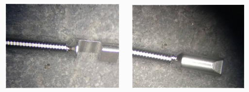 外觀和活檢鉗相同,鉗頭設(shè)計為夾頭形式,焊接點(diǎn)的夾頭座套管和彈簧管焊接,6點(diǎn)對稱焊接。