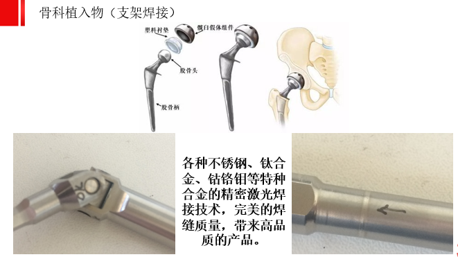骨科關(guān)節(jié)植入物,存在大量的人工鉸鏈、銷釘、構(gòu)件;這類型產(chǎn)品直接長期植入人體,對結(jié)構(gòu)的穩(wěn)定性要求極高,所有的鏈接點(diǎn)都需要進(jìn)過激光點(diǎn)焊固化,防止脫落。